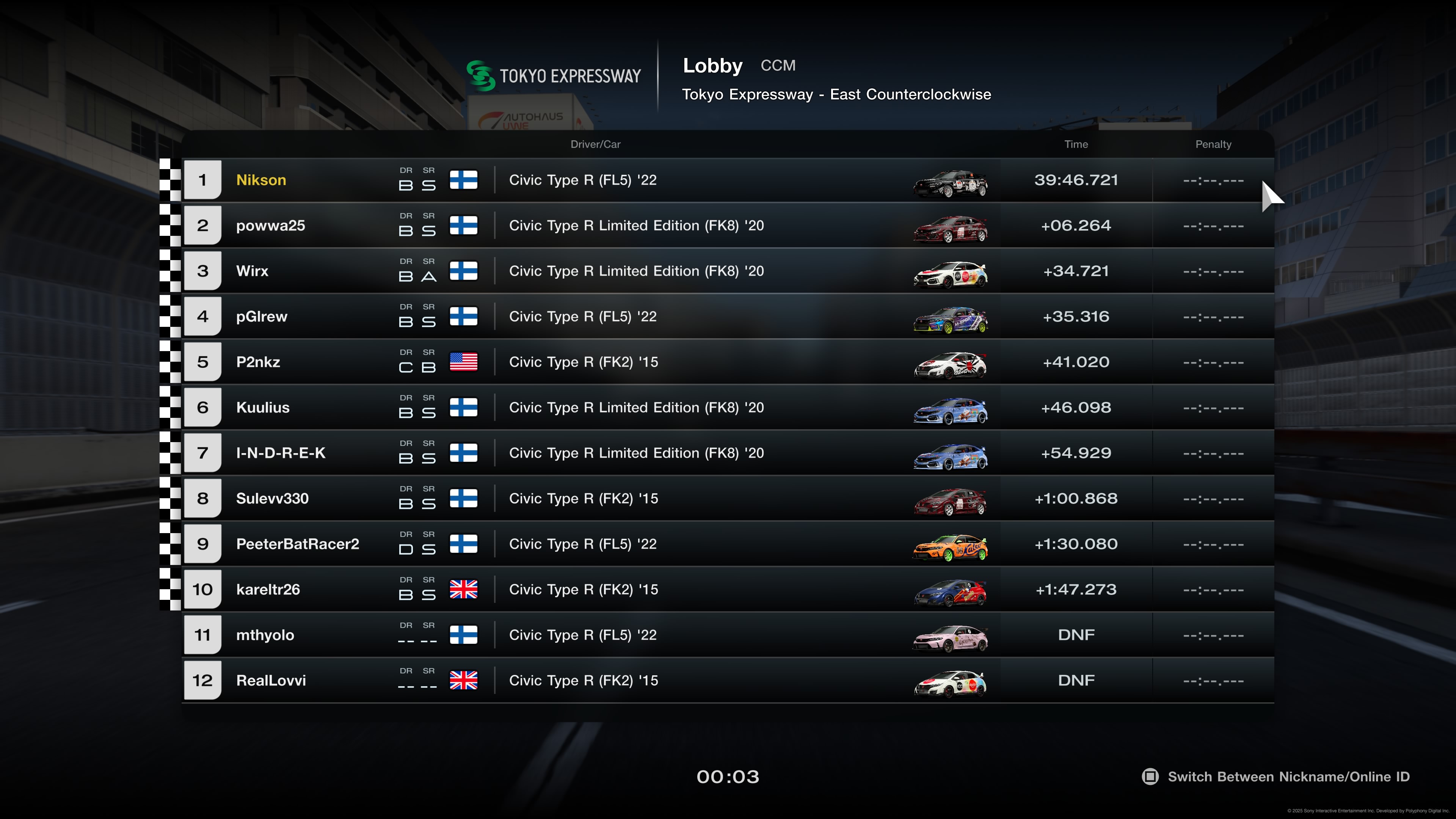 Re: 5. etapp: Tokyo Expressway - East Counterclockwise 23.04