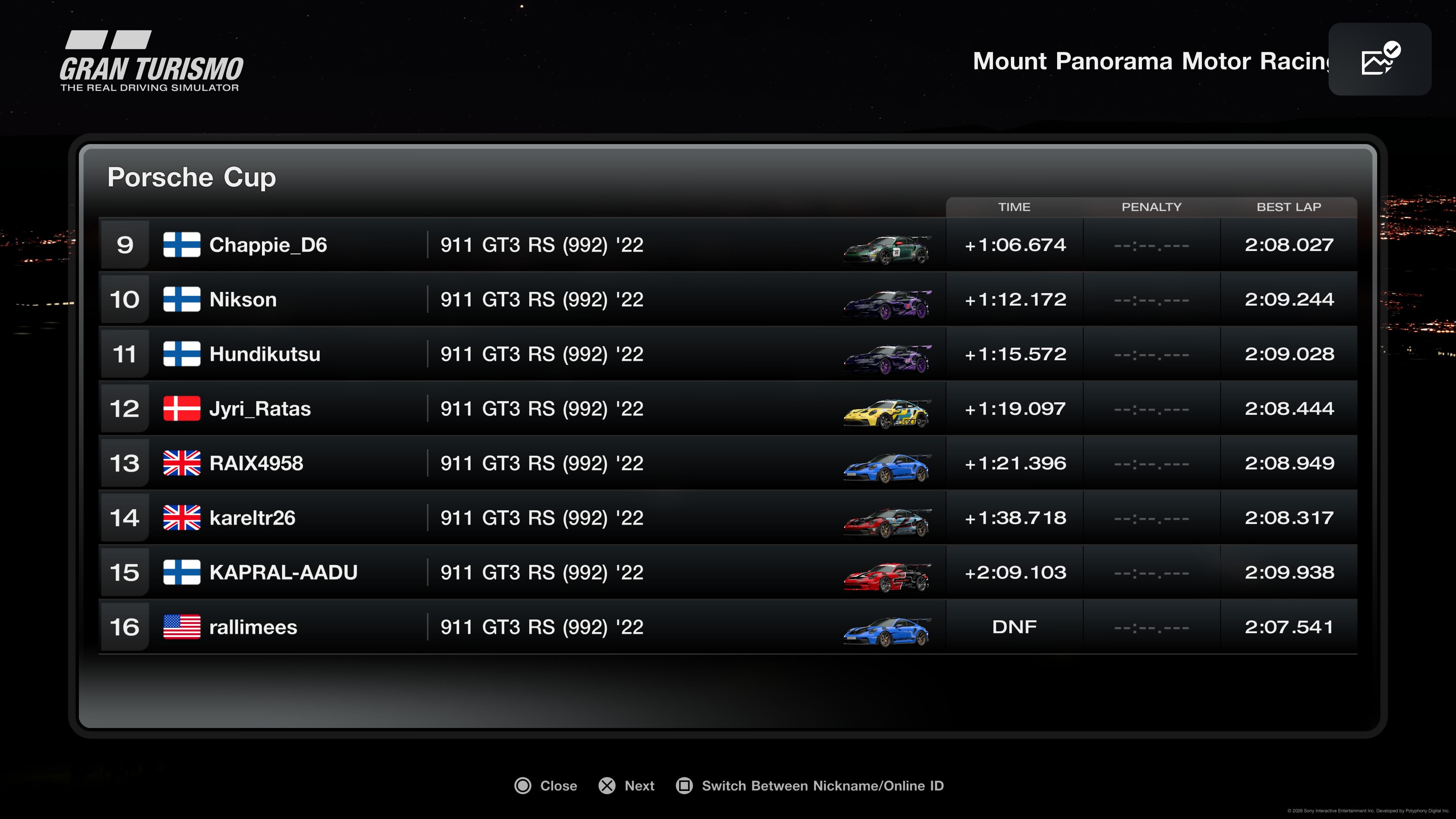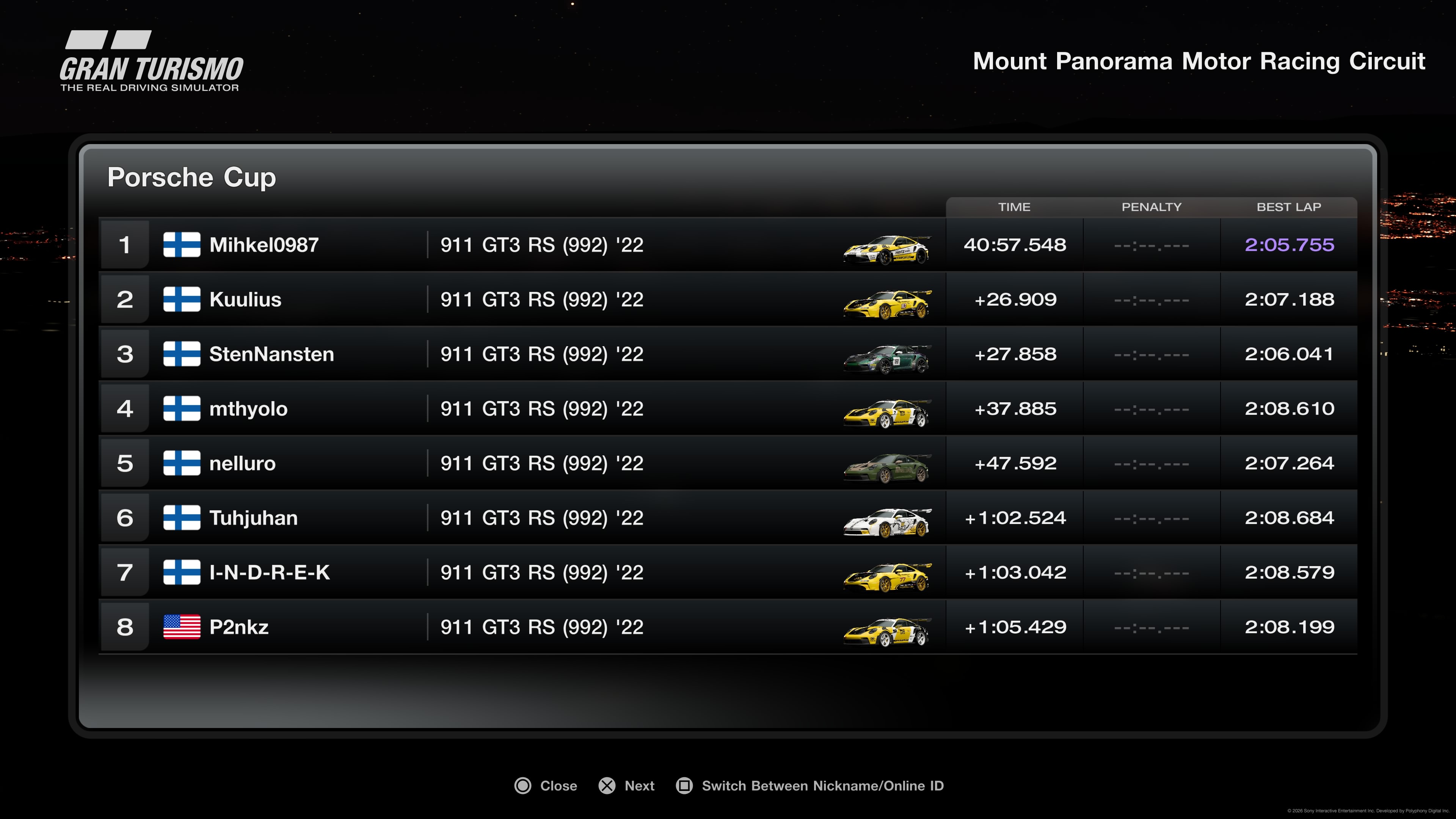 MITTE UNUSTADA! Auto seadete leheküljest videoklipp põhisõidu järgselt teha ja jagada välja vastavasse PlayStation vestlusgruppi "Porsche Cup 2025/26".